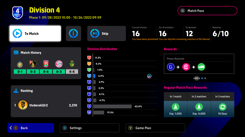 Ma csak 2 meccset játszottam, 1-0-ide division 3-as ellen, a másik meccs laggolgatott, kaptam egy gólt és nem szép dolog, de inkább kiléptem.