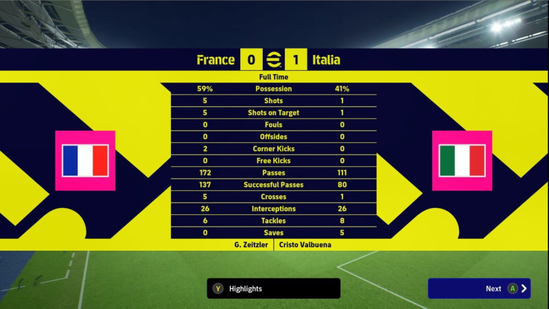Végre lehet tartani a labdát passz előtt, nem csak ütemes gomb nyomogatás az egész. A labdafizikán még lenne mit csiszolni, de ez igy már egy jó futball játék. A FIFA 23 sehol sincs ehhez játékmenet szempontból, a kártya gyüjtögetésről meg nincs véleményem, mert hidegen hagy, nem hiszem, hogy akkora jelentősége lenne, mint sokan gondolják. Ez csak arra jó, hogy az EA és a Konami jól teletömje a zsebét. -
