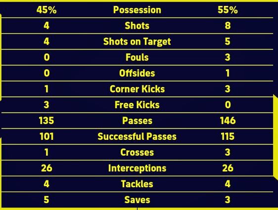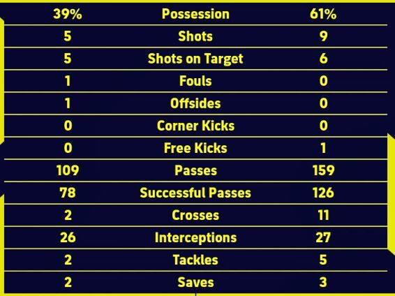 A gyengébb csapattal játszó játékosként is gyengébb volt, mégse tudtam semmit se kezdeni vele a 100+-os támadóimmal, ahogy betettem a 16-osra a labdát rögtön odaléptek a 80-90-es védői, átvenni nem volt időm, így többnyire csak távoli lövésekkel tudtam operálni. -