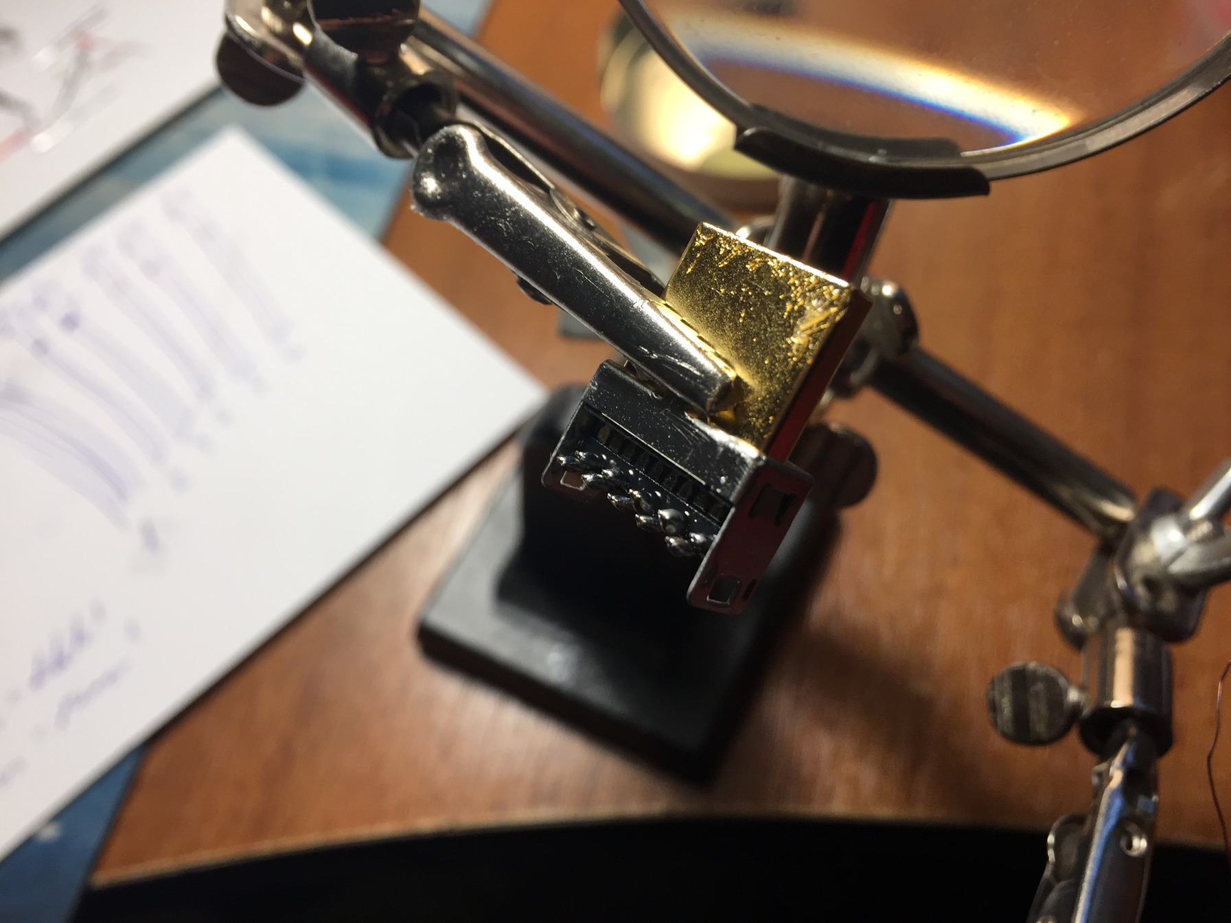 Az ilyen jellegű forrasztásokhoz mindenféle képpen állítható hőmérsékletű pákát ajánlok. Talán lehetett volna még kicsit szebb a zsugorcsövezés de lehet még lecserélem az mpcienél lévő aljzatot egy aranyozotra. -