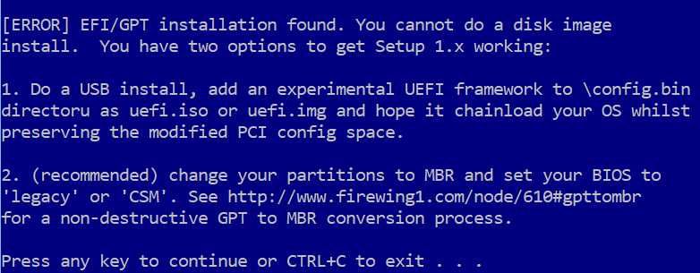 Átraktam MBR2GPT-ra, hogy UEFI-s legyen a Windows 10, erre Setup 1.30-nak MBR kell, hogy települjön