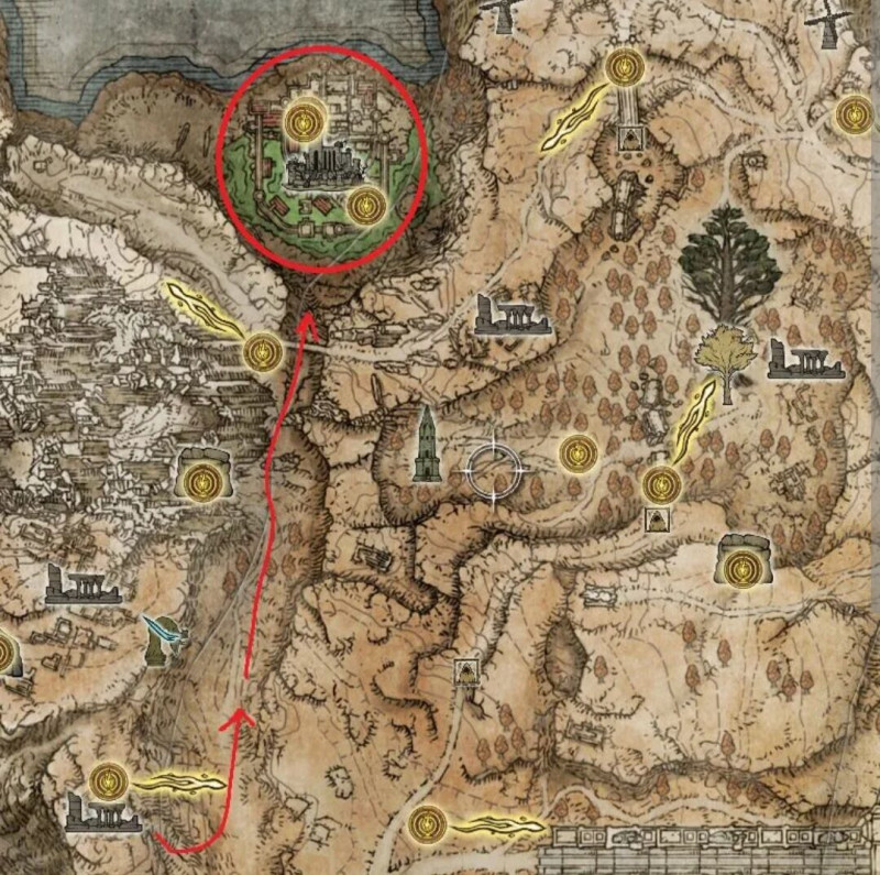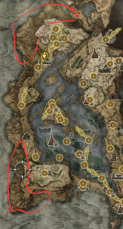 A felső bekarikázott részre már nem emlékszem, de az alsóra majd a föld alól tudsz feljutni (kell, hogy járj előtte majd egy Lake of Rot nevű területen is a föld alatt), ha csinálod Ranni küldetését. (Gyakorlatilag annak a zárásakor, ha jól rémlik.)