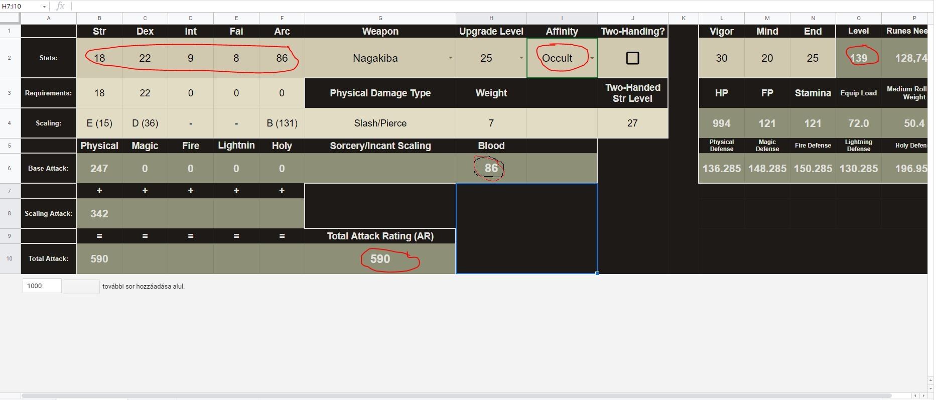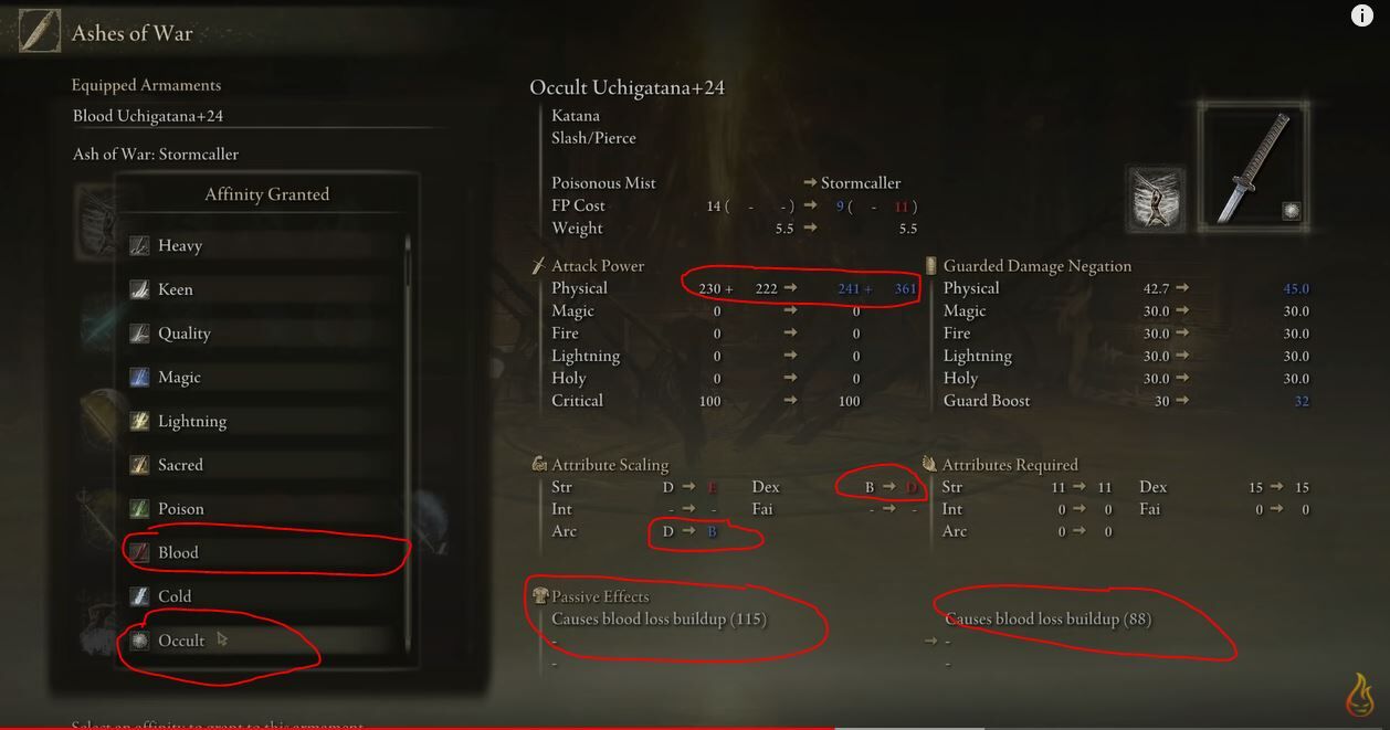 Találtam most egy jó calkulátort, és szerintem az Occult a legjobb afinity. 140 szintél majdnem ugyan annyi damaget lehet belőle kihozni mint a Knee -nél de dupla annyi bloodbuildup. A bleed afinity -nél sokkal kevesebb damage de 25 -vel magasabb bludbuildup. Nagakiba -val. -