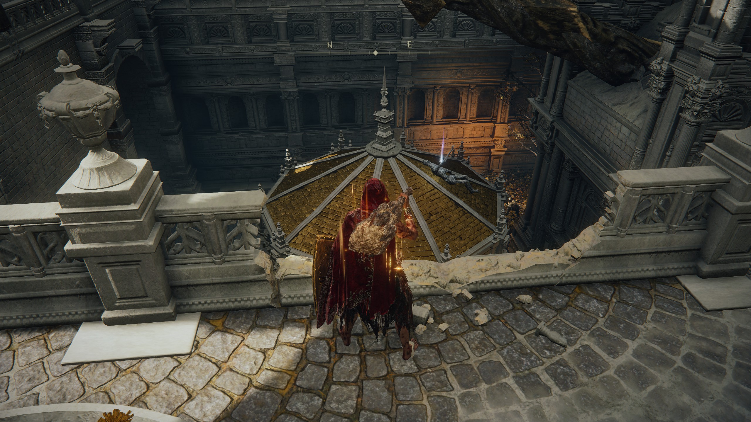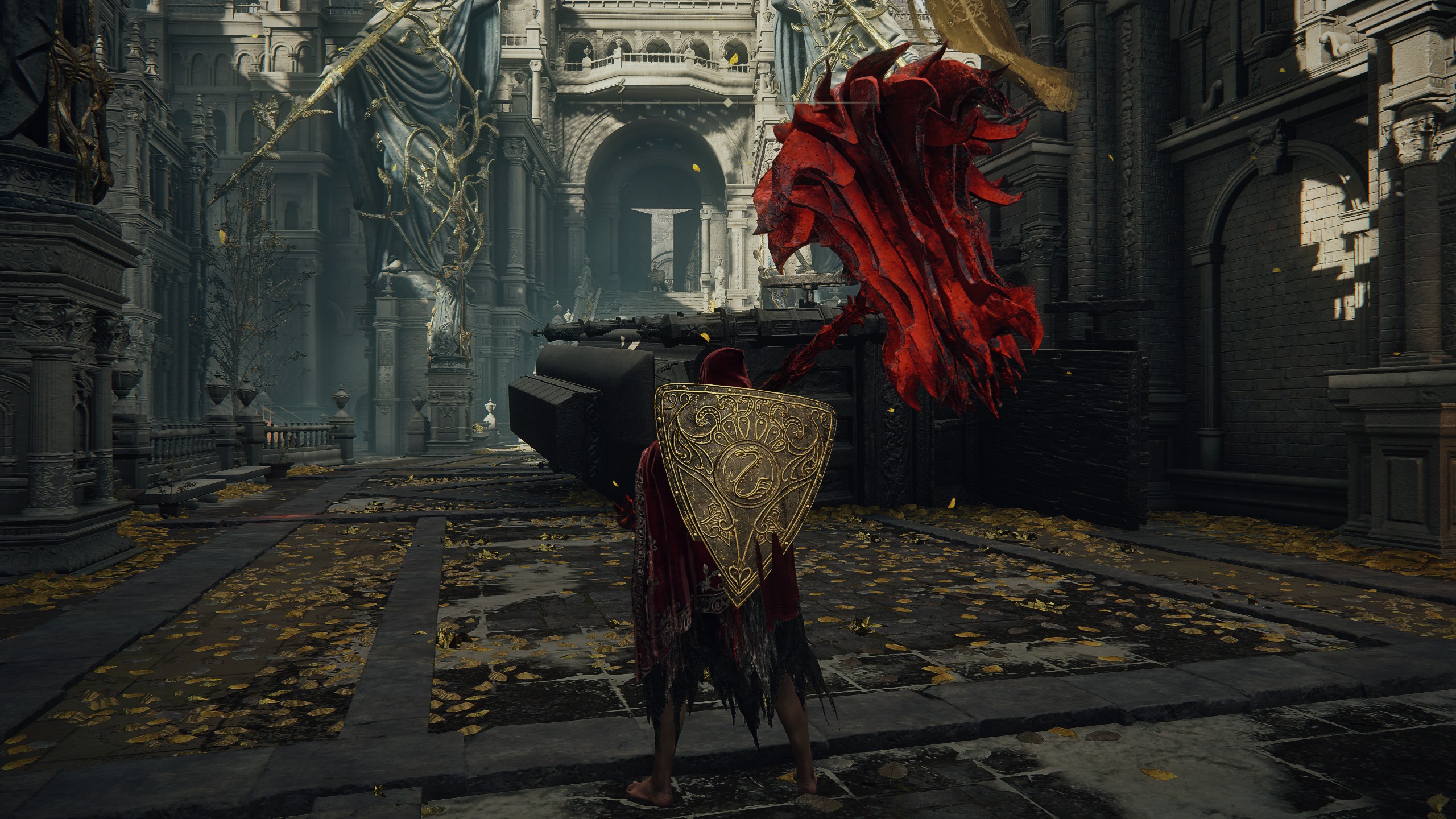 Mindegy, folytattam a világ felfedezését. The Shaded Castle külső része viszonylag jól ment (mondjuk kellett hozzá a Mushroom Set), aztán szétszívattak a belső udvaron tanyázó dögök. Meg a Lesser Crucible Knightok. Amíg rá nem jöttem, hogy Uchigatana helyett Zweihander kell nekik. Elemér, az itteni boss 4-5 próbából sikerült, de csak azért, mert az elején bunkósbottal csapkodtam, hátha lesz belőle kritikus ütés (nem lett).