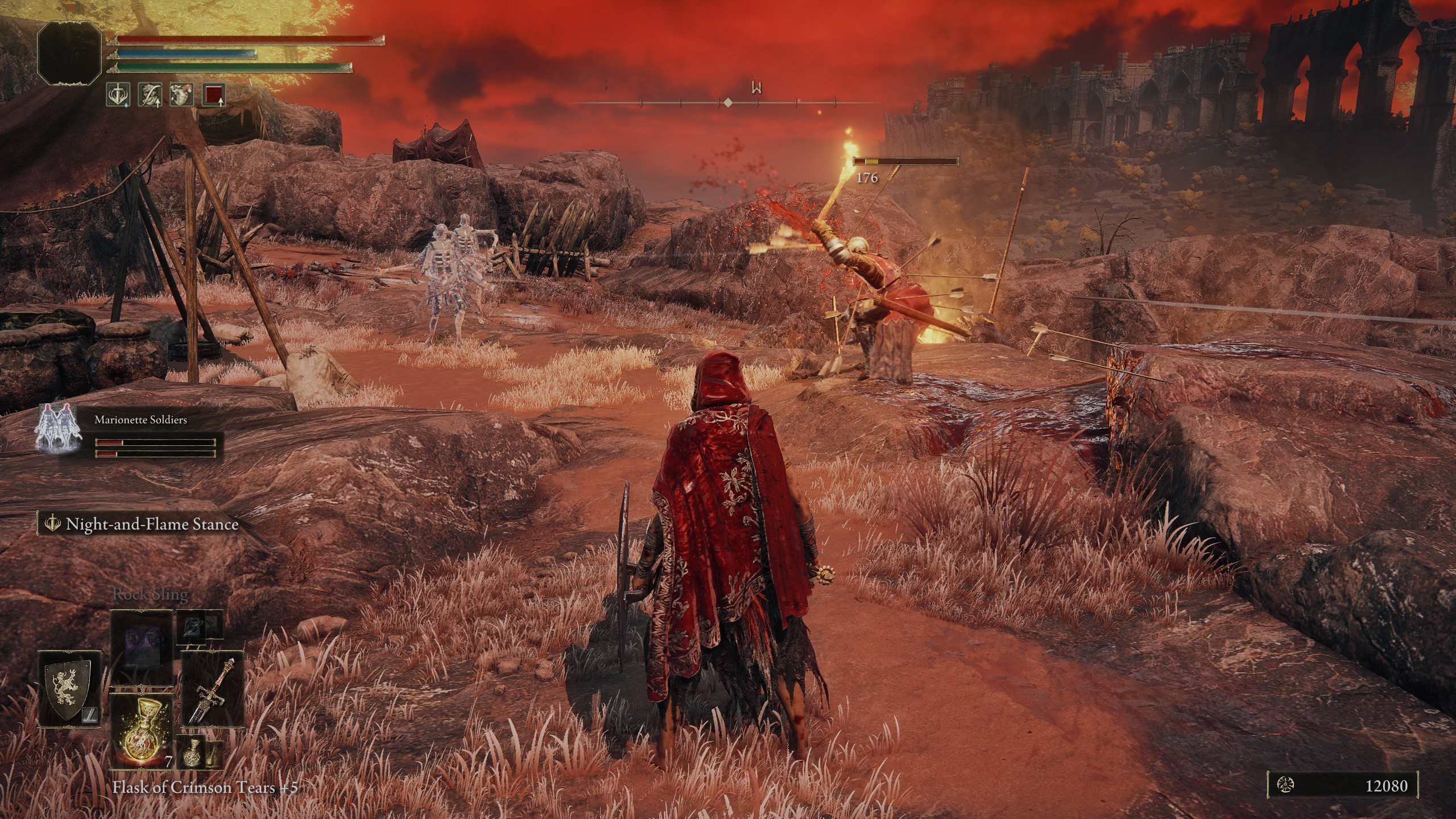 Ainsel Riverben a Dragonkin Soldier of Nokstella valami brutálisan nehéz volt. Nem is értettem, miért: máskor 1-2 nekifutás után simán elintéztem. Most vagy 15* kellett neki menni; Stormhawk Deenh, jól időzített Scarlet Rot (3*), villámló Uchigatana Altus Plateauról, ügyes ugribugri, nehogy ott maradjak a területre ható Frostbite miatt (amiatt is volt 3-4 sikertelen összecsapás)... -