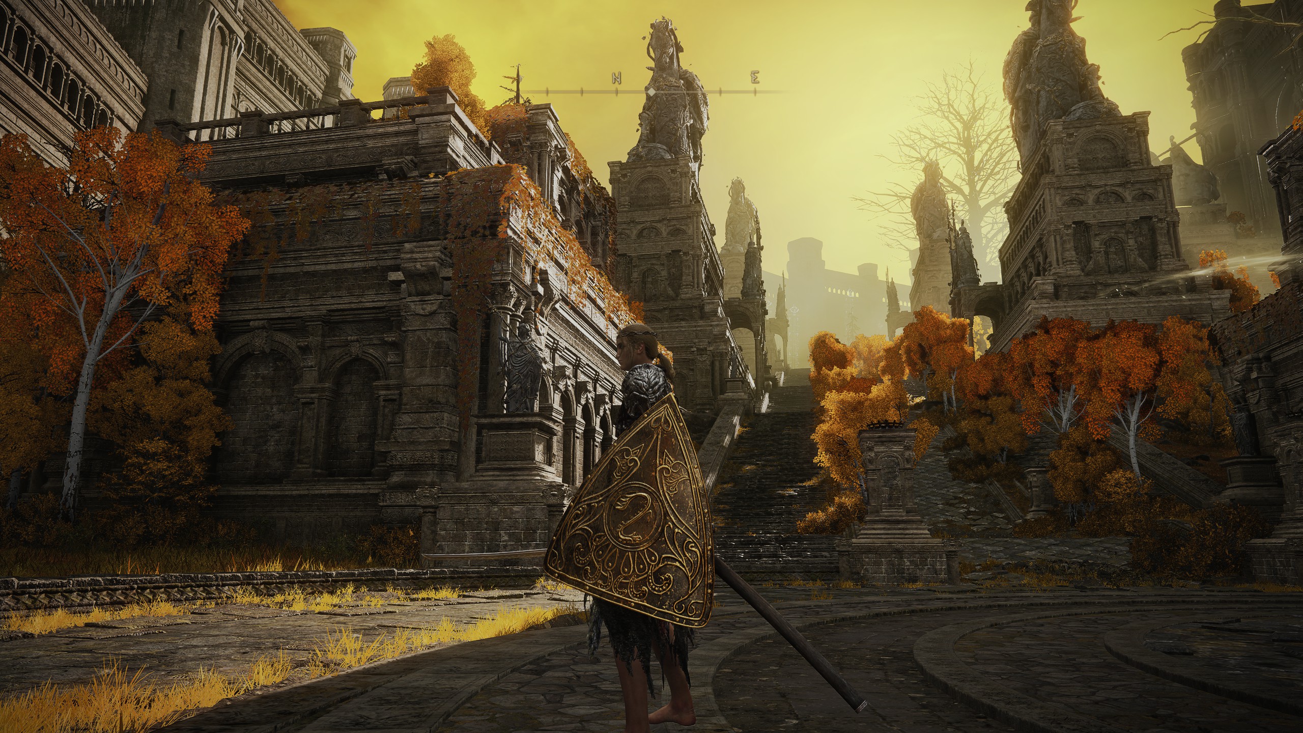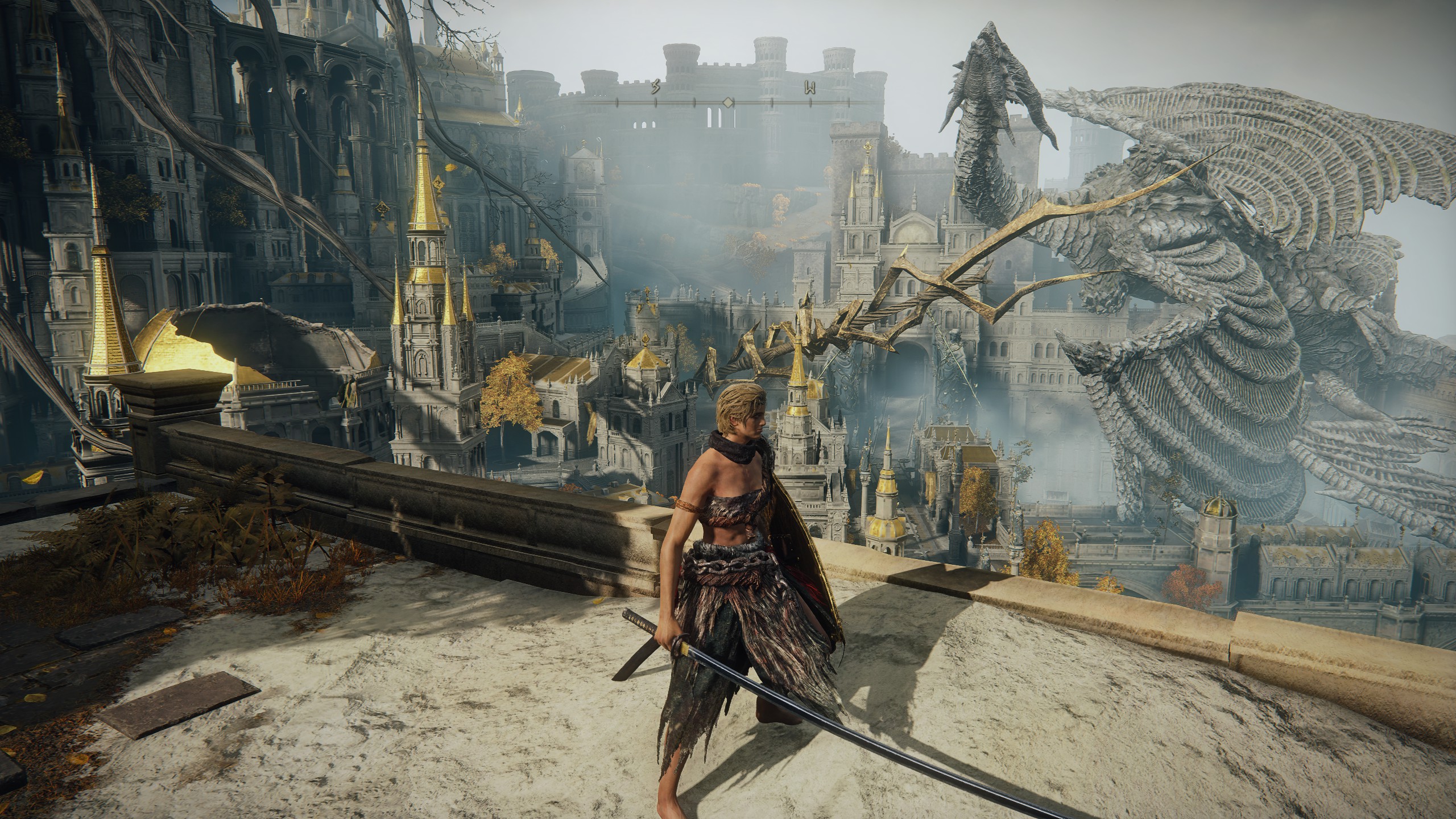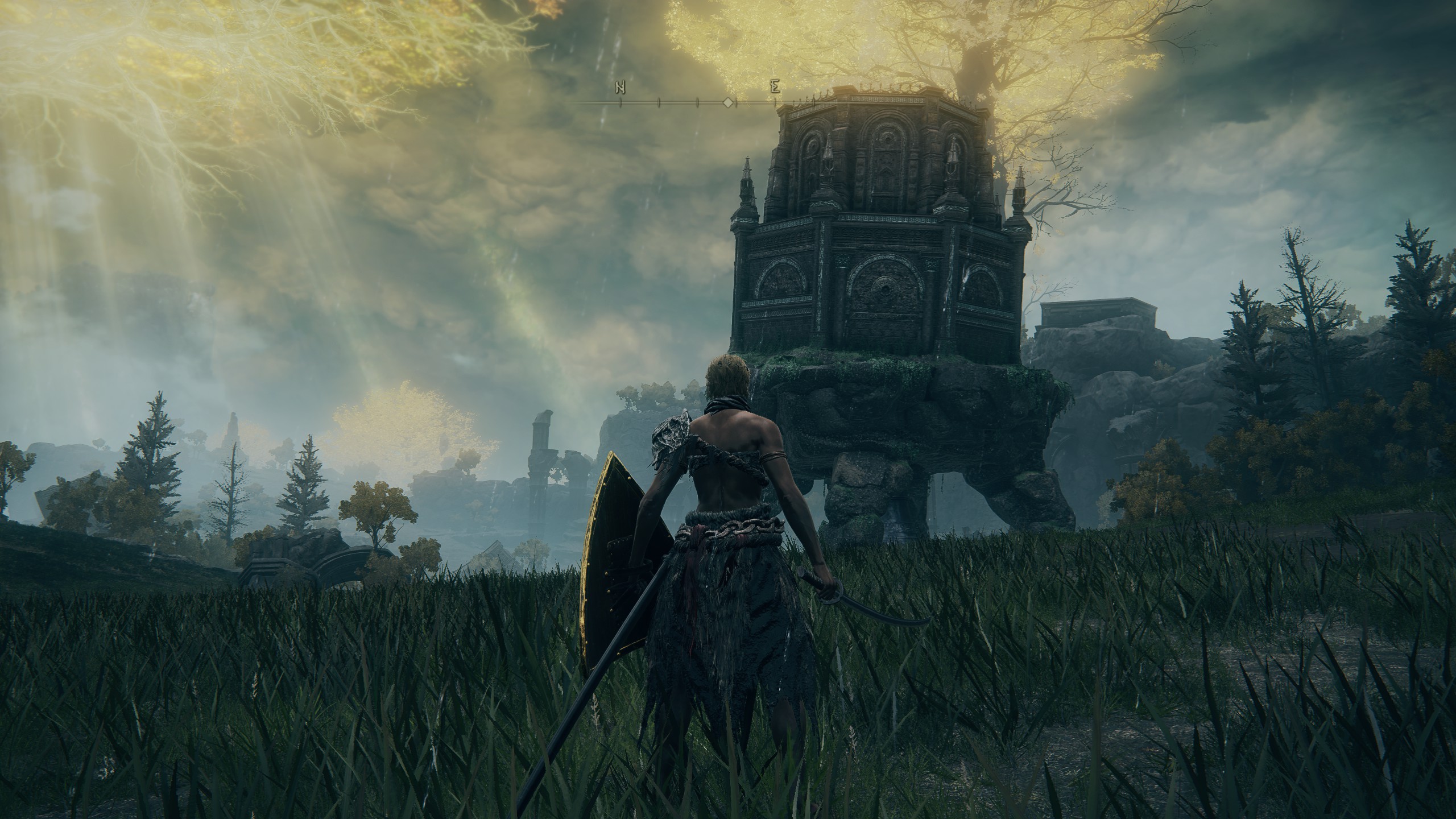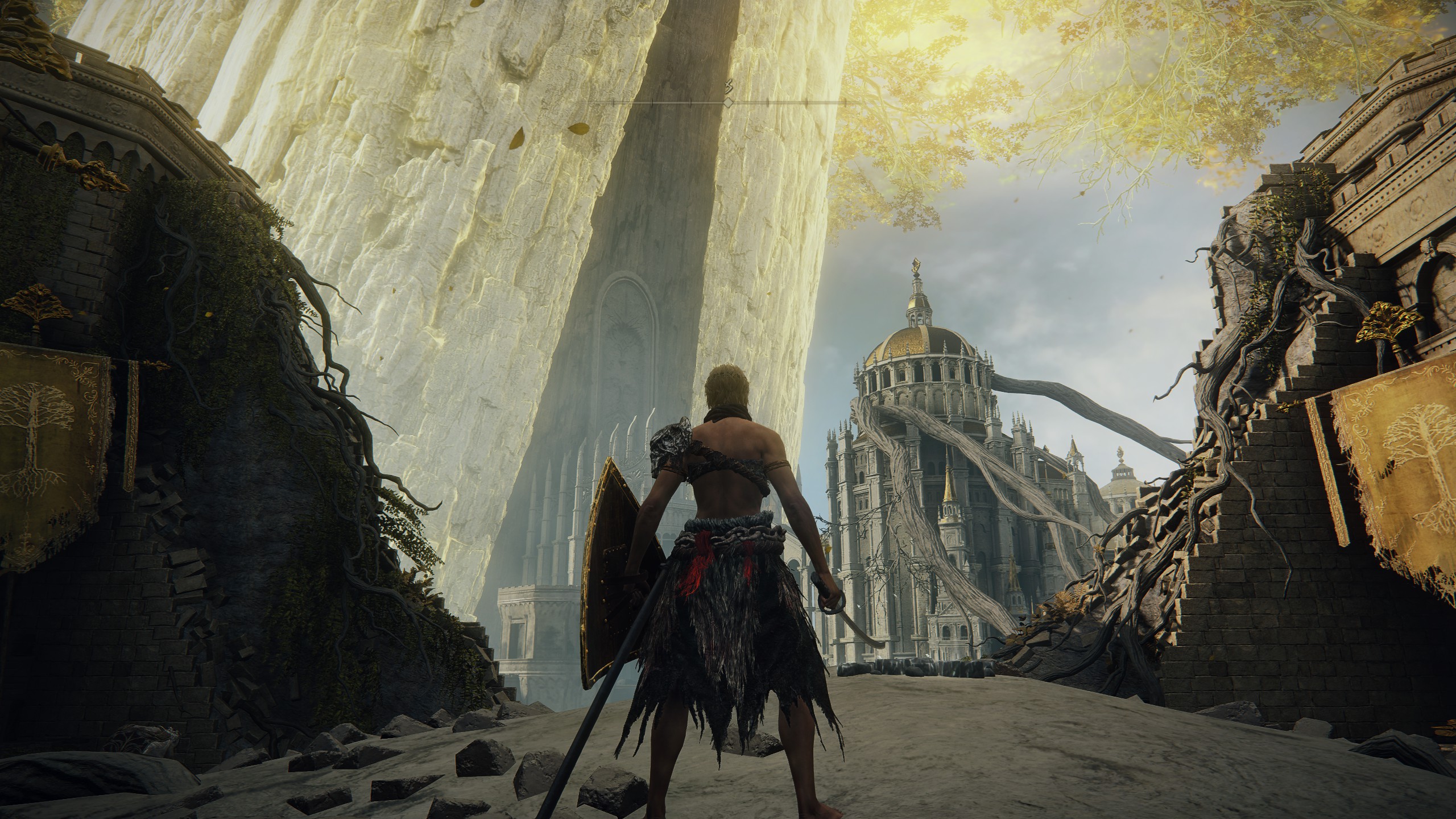 Én meg nagy békésen sétálgatok Leyndell külvárosában, nézegetem a tájat, találok valami kezdetleges erődítményt, bekukkantok. Egyszer csak megjelenik egy Ulcerated Tree Spirit, felrobbant mindent, alig győzök menekülni. Jön utánam. Egyre közeledik.