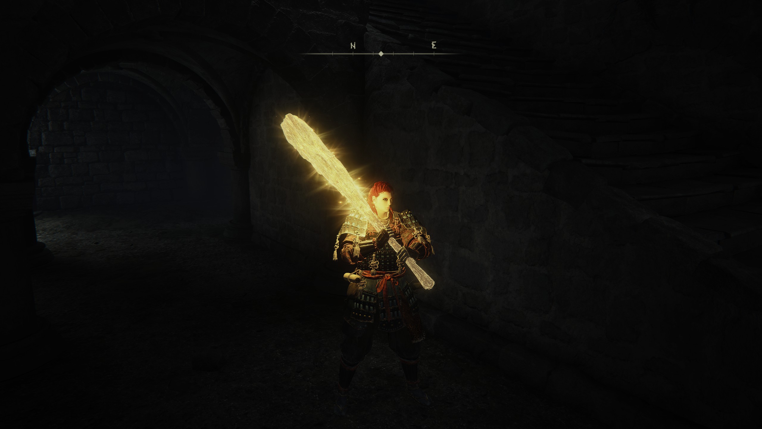 Este kicsit meguntam Joe Bacsit, és a változatosság kedvéért elővettem egy régi karaktert, Evelint. Ő főként Uchigatana és Nagakiba segítségével aprított, de arra gondoltam, kipróbálom a Sword Sage buildet, ahhoz pedig meg kellett szerezni a Sword of Night and Flame kardot. Hát, a Caria Manorban szanaszét szívattak a szellemek az emeleten, amíg rá nem jöttem, hogy az Uchigatana helyett akár pajzsot is foghatnék a bal kézben...