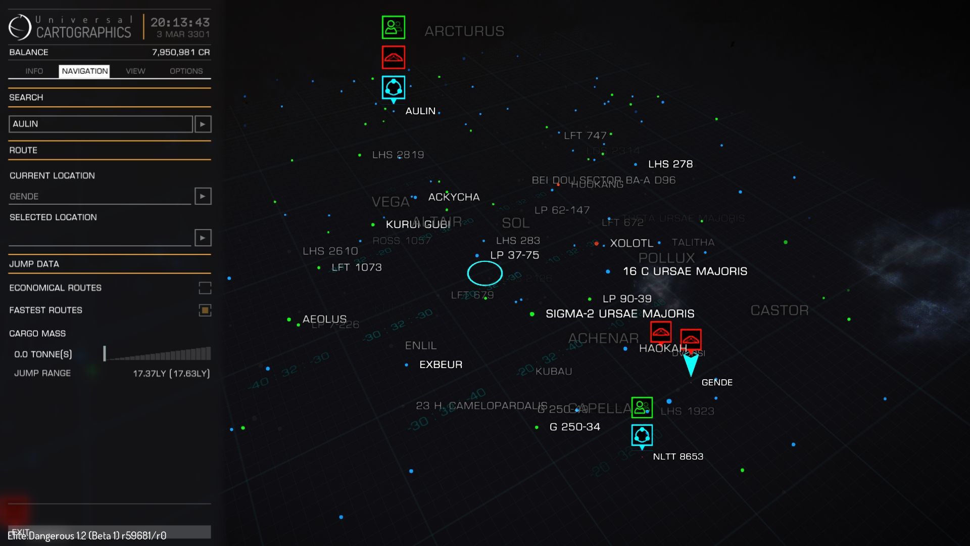 Nekem azért elég az 5B FSD, mert ha felfedezek, akkor elugrálok 100-150 fényévnyire a felfedezettlen területig, aztán átállítom az útvonaltervezést eco-ra, kinézek egy 800-1000 fényévnyire lévő rendszert, kis ugrásokkal haladok arrafelé, és szkennelek minden értékesnek tűnő bolygót.