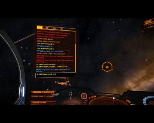 Tegnap RES-nél valaki kérdezte, nyomjuk-e wingben, mondtam ok. Küldtem a wing requestet, elfogadta, és a chat ablakban úgy is írta ki, hogy wing, kék is volt a csákó, lila volt a célpontja, de nem láttam az ikonját a HUD-omon. És a galaktikus térképen sem láttam. Persze vadászat közben sikerült beledurrantanom egy fakabátba, úgyhogy rohangálhattam a szomszéd rendszerbe bíróságra, hogy tisztázzam magam. Azóta nem volt alkalmam próbálni. Lehet, hogy bug volt és közben javították? -