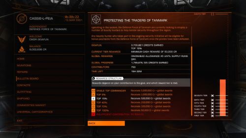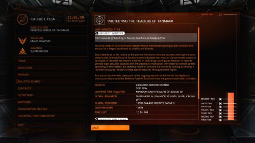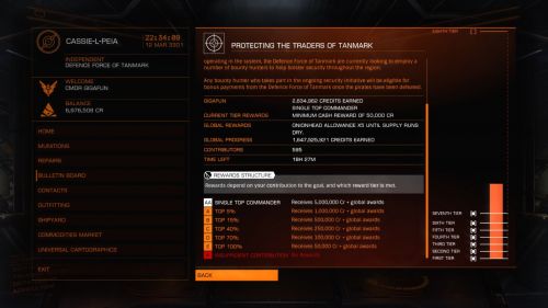 • Claiming a bounty or combat bond for a faction should now affect Commanders' reputation