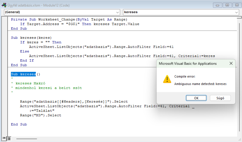 Ha nem találnád a makrók között, akkor a Makró importálása menüponttal tudod a kódból beimportálni.