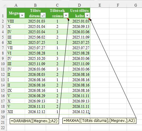 Három segédoszlopot használok, ideiglegesen (E:G).