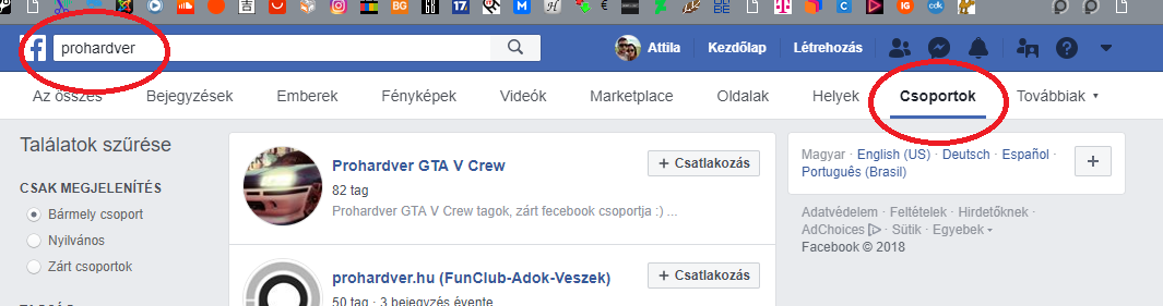 Facebook app. Csoportokon belüli kereső hol van, ha van?