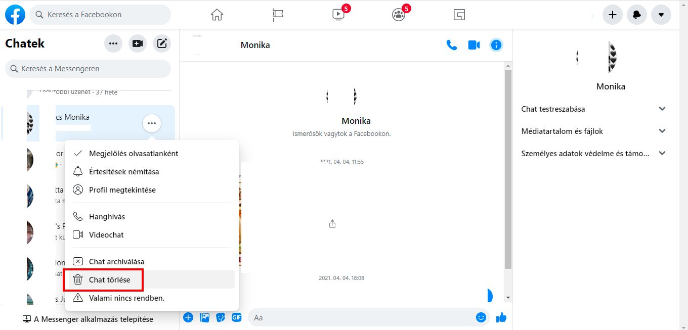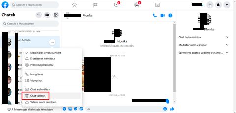 Én még nem csináltam semmit, csak érdeklődöm, hogy mi történne akkor, ha törlöm a beszélgetést, magát a beszélgetést, tehát nem csak simán x-et nyomok rá.