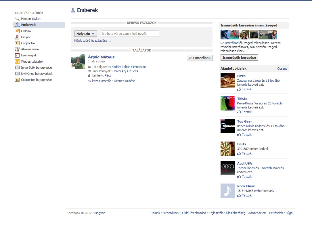 Ezen a szerencsétlen facebookon akarok keresni helyiség név szerint illetve szűkíteni adott helyiségen belül az x vezetéknevűeket. De nemakarja elfogadni, és csak helyiségnév szerint tudok szűkíteni. Miért nemakar név szerint is?