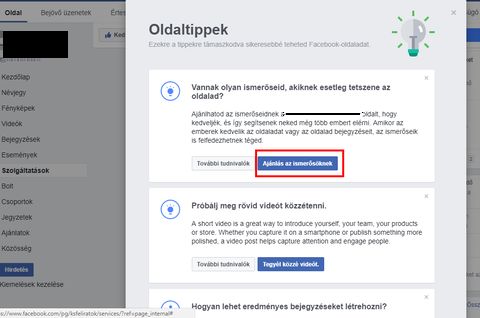 Van lehetőséged az ismerőseid figyelmébe ajánlani az oldalad: