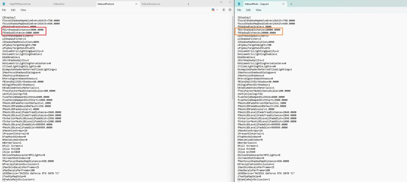 + nyugodtan írd át a Fallout4Prefs.ini fájlban lévő Shadow távolságokat 3000-re 20 ezerről mert nincs sok különbség, de a gépeinket nagyon megeszi. Még az RTX5070TI-t is. Egyszerűen ilyen a grafikai motor