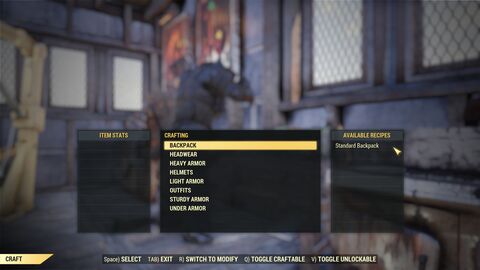 https://fallout.fandom.com/wiki/Backpack_(Fallout_76)Mod : Armor Plated , Chemist, High Capacity , Insulated , Lead Lined , stb....