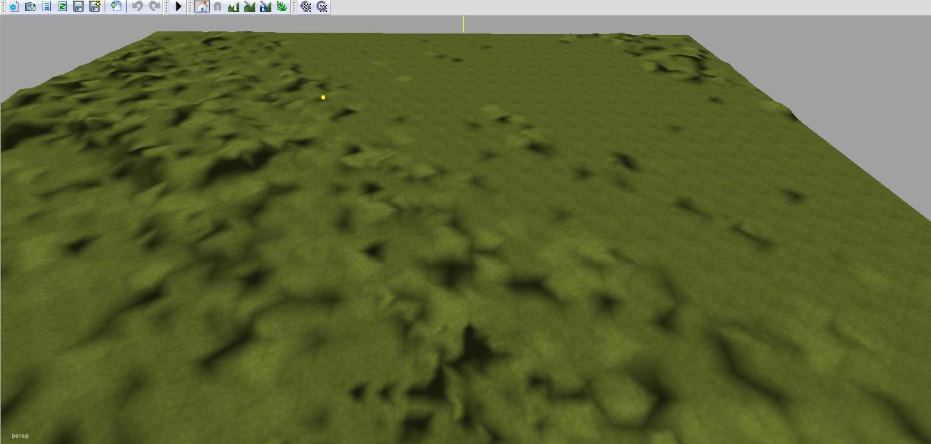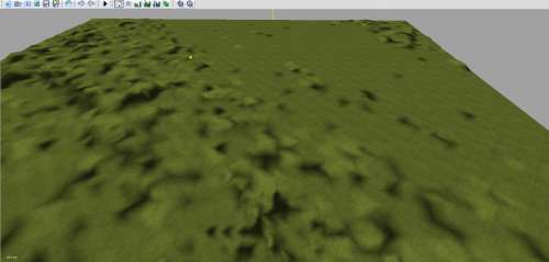 Csak úgy kapásból egy 10 km x 10 km területet vágtam ki aminek a középpontja valahol Maglód és Pécel között van a Fáy tanya közelében. Egy 4x -es üres pályára húztam rá a domborzatot méret 2048 x 2048, units / pixel 5, így nagyjából méretarányos. Bár valószínűleg ez így túl nagy. Ki kell kísérletezni egy optimális méretet.Simítás nélkül, nyersen így néz ki, kár, hogy fogalmam sincs mi merre lehet