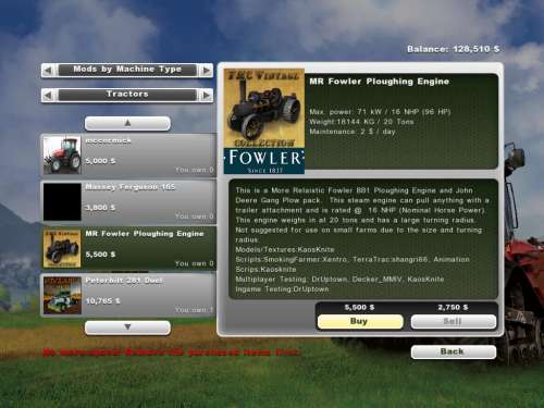 Az a problémám hogy mikor meg akarok venni egy eszközt (trágyalészóró) nem engedi megvenni mert azt írja ki hogy "Nincs több hely! Adjon el valamit a meglevők közül" (valami ilyesmi).