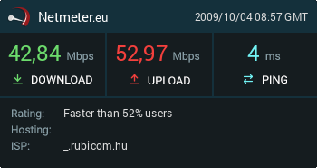 A ping az egész jó a sebesség is, de az upload jobb szokott lenni... Majd este biztos megjavul -
