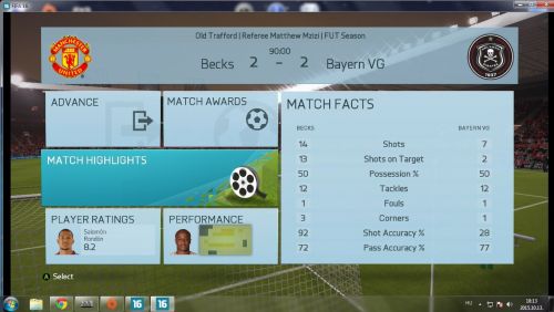 Most játszottam le a 100-ik online FUT meccsemet....kezd alakulni a játék, de a bírótól rosszul vagyok. Már azért is fúj ha leelőzöm a labdást. Ráadásul én agresszívan szoktam játszani, sokszor használom (használnám) a testi erejüket is a játékosoknak, de idén ez képtelenség. Teljesen mindegy mit csinálok lefújja és 70%-ban lapot is ad.
