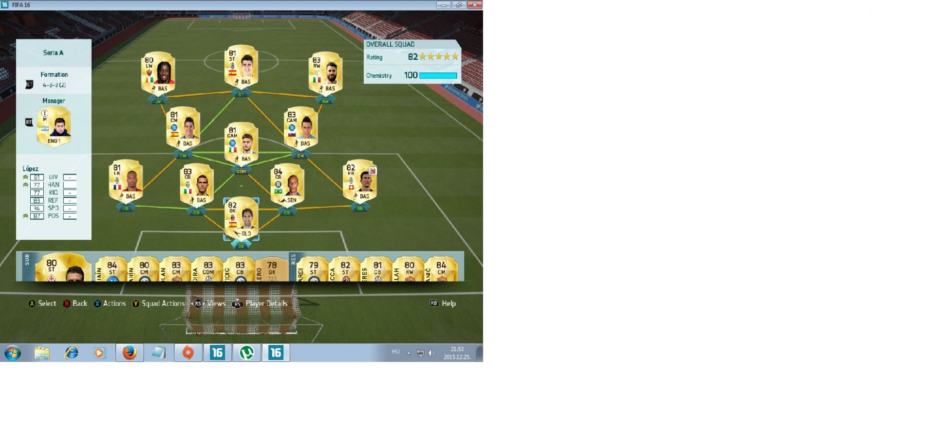 Na beszalltam en is a buliba. Nyertem egy offline draftot, van egy eladhatatlan Marchisio-Khedira parosom, igy korejuk lesz majd vmi low budget seriea csapat, plusz elkezdtem a bpl csapatom epiteni, eddig van egy wilshere-herrera-schneiderlin harmasom, elol martiallal. 15-20k-bol johetnek az otletek