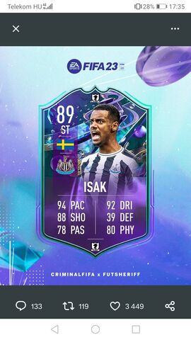 Tavaly tavasz vége felé volt egy felturbózott Braithwaite lap, (90 volt talán) amit nagyon bírtam, egész a totsig kirobbanthatatlan volt a kezdőből nálam, most láttam van egy 86os if lapja, 4 rivals meccsen 7 gól