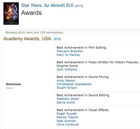 A legjobb példa a 2015-ös Ébredő erő ami kb. a Star Wars - Új remény remake-je. és még így is lett 5 Oscar jelölése, pedig egy felejthető film.