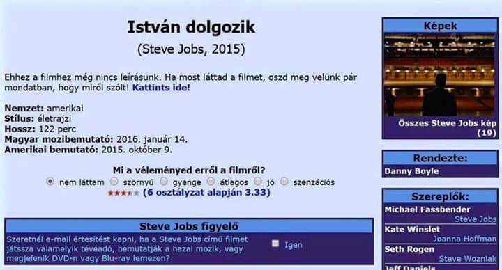 Ellenben a színészek nagyon jók és jól hozzák amit kell.Megvallom őszintén én annyira nem ismertem Steve Jobs-ot emberileg, meg milyenek voltak a keynote-jai... illetve a közönség. Így autentikusságból nem tudom értékelni, de ha olyan volt tényleg az egész légkör meg Jobs ahogy ábrázolták, akkor a film kitűnően visszaadja, köszönhető tényleg a színészeknek.