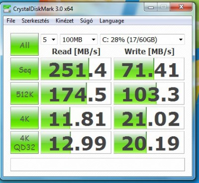 Amúgy érzetre pörgős, gyors, csak az a 57 Mb/s-os írási sebesség izgatja a fantáziám...