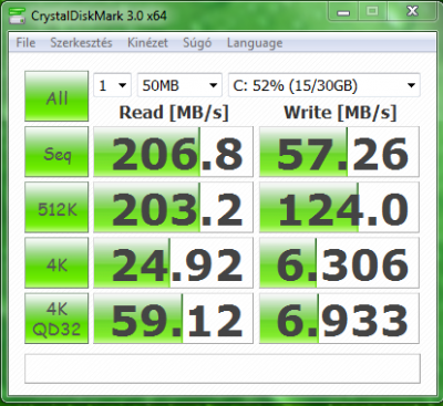 20 éve várom a normális munkatempót a géptől, mostmár azért majdnem olyan.)Az OCZ Vertex 2 50GB eredménye: