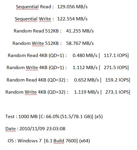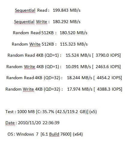 Megnéztem, hogy hogyan teljesít egy CorsairF60 és egy OCZ Vertex2 raidben. Ez született:
