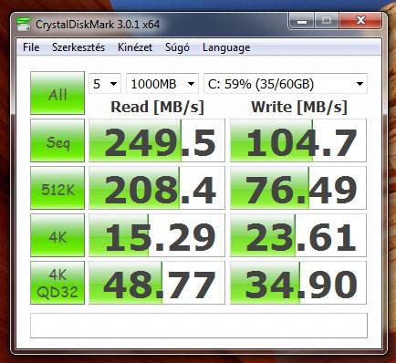A gepedet csak most neztem meg es latom nForce chipes az alaplapod, szoval ne varj jobb sebesseget. Intel chipset a legjobb, utana meg az AMD SSD-k ala, nForce-szal nem is lattam meg SSD tesztet.