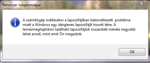 már, mindent elkövettem, vissza állítottam a virtuális memóriát, de továbbra is a laptop be kapcsolása után látható megjegyzés.