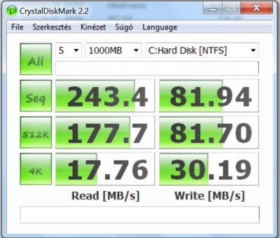 AS SSD-ben 40 felett, CDiskmarkban meg 60 felett az Irás 4K-nál.