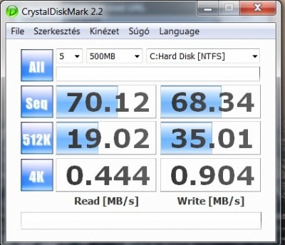 A leggyengébb és ez az árán is meglátszik a JMicron-os 64GB, ami a tied is. Az írási késleltetéssel vannak problémái, nagyon kicsi a belső tár mérete és ez sokat lassít. A gyakorlatban a több alkalmazás egyidejű kezelésénél mutatkoznak meg ennek a kifutóban lévő vezérlőnek a gyengéi.