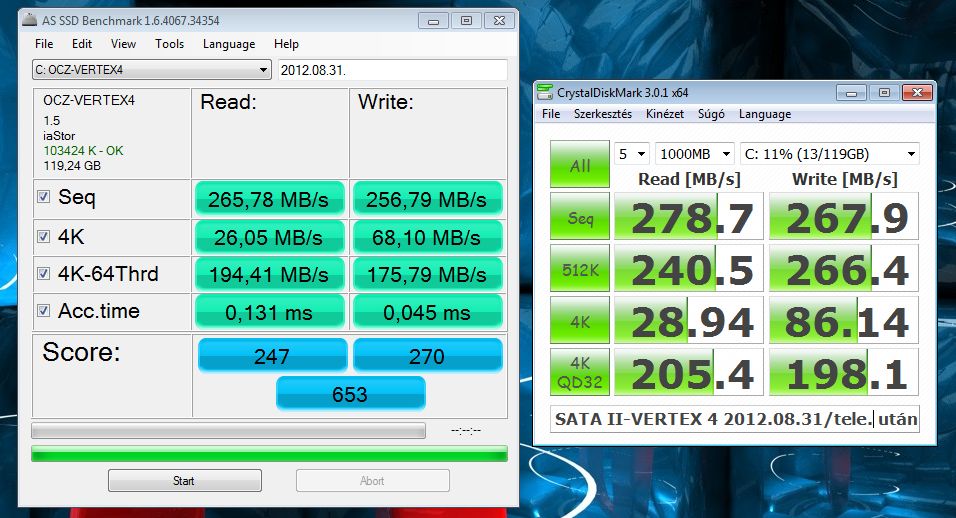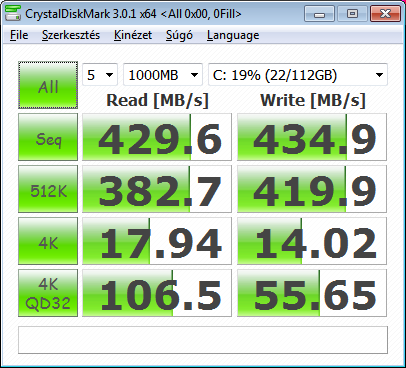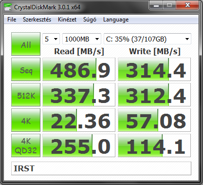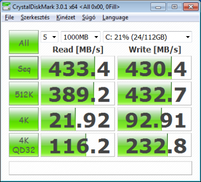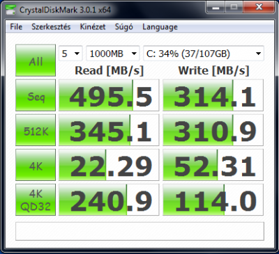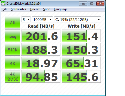vedini: Windows driverrel is mérj egyet. Pár hsz-szel lejjebb láthatod az én eredményeimet (Ivy i5, 8GB RAM, SATA3). Elméletileg 300Mbps-nek kéne lenni nagyjából, de inkább kevesebbnek egy kicsit.