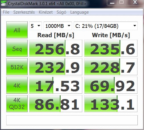 Olvasási 530 MB/s - írási sebesség 130 MB/s