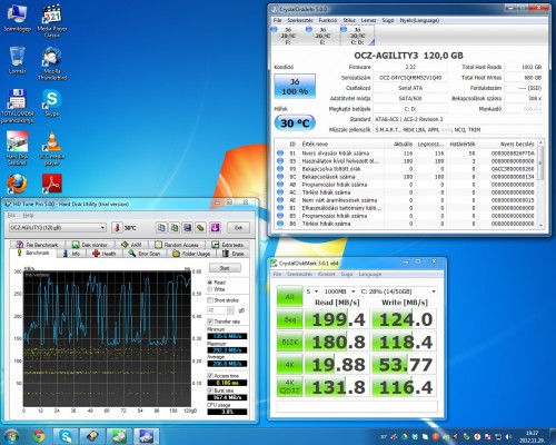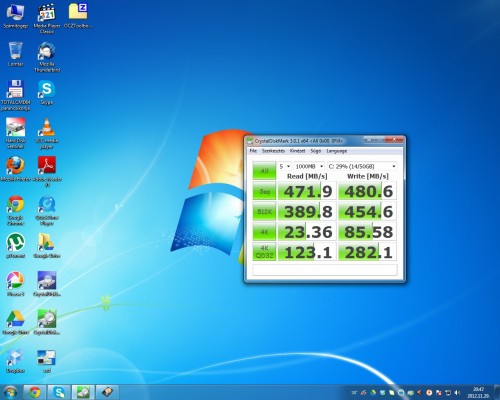 Most sikerült beszereznem egy Sata 3-as alaplapot és kíváncsi voltam, hogy mit bír az OCZ Agility 3-as SSD-m. A Gyári értékei írás és olvasás esetén is 500 MB/s felett vannak, ezzel szemben az alábbi hitvány eredményeket kaptam..