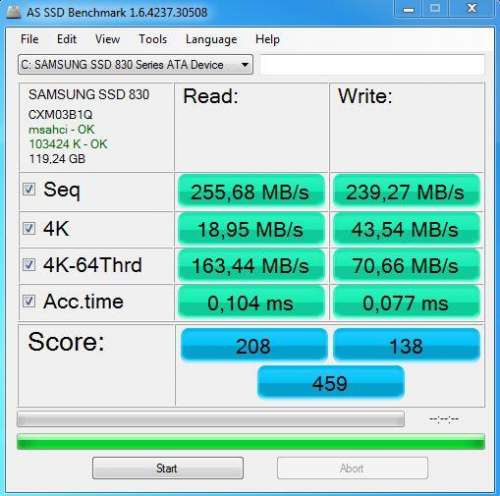 a samsung 830as így számolja.. az a 99% az valójában 99,9999999% ez így jó, mindenkinél ilyen1. nem kell számolgatni.. ezt elindítod és látni: AS SSD Benchmark