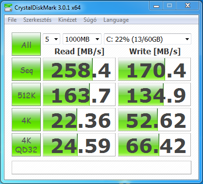 Ha a HDD-hez képest nem érzel különbséget, azt nehezen tudom elhinni. Ha meg esetleg a sebességeredményeket találod alacsonynak, az a SATA1 miatt van, ahhoz mérten teljesen rendben vannak az eredmények.