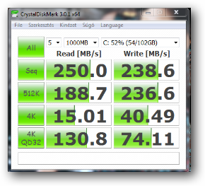 Van egy kis problémám. Egy hete kaptam kézhez egy OCZ Vertex 3-mat, 120 GB. A telepítést (Win 7 ultaimate) a korábbi topic alapján csináltam. Figyeltem az ACHI módra, és az alignálásra is. Az AS SSD mindkettőt OK-nak jelzi. Az SSD támogatja a TRIM-et, több helyen ellenőriztem, a windows elvileg el is küldi a parancsot. A benchmark futtatások azonban nyugtalanító eredményeket adnak. A szekvenciális írási sebesség nagyon ugrál 150 és 70 MB/s között, ami alapból nem túl izmos. A CrystalDiskMark már 400 MB/s körüli értéket ad. A különbség nem tudom miből adódik. Az SSD-n egy 8 gigás file másolása 110 MB/s-os sebességgel ment.... nem vagyok meggyőzve, hogy minden jó. Pedig a TRIM-et minden lehetséges módon ellenőriztem.