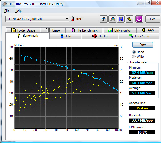A HD Tach is ennyit mért még akkor, aztán miután elkezdtem használni, ez lett..mondjuk azóta volt alaplapcsere és ugye most win 7-en vagyok, de már XP-n is kezdte ezeket az eséseket.