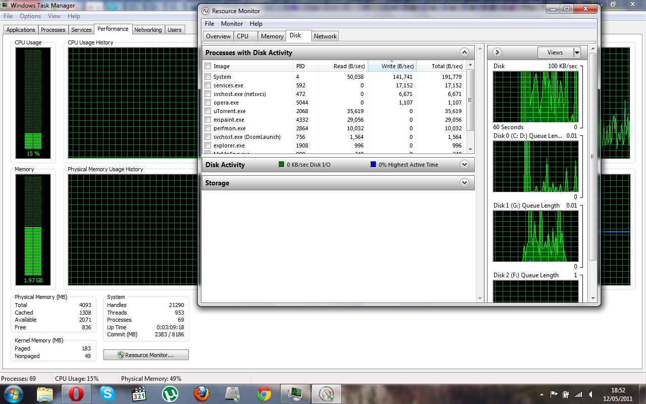 Nezd meg az Intezoben a "Resource monitor"-t, hogy melyik program ir annyit, kep.