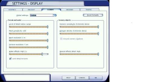 Ami még megemlítendő, hogy REX2 Essentials + Overdrive textrúracsomag van fent nem kevesebb, mint 4096x4096-os felhőkkel, azaz ott is minden ki van maxolva. Egyébként rájöttem, hogy baromság az FS beállításoknál a 1 m-es mesh és a 7 cm-es textúra, mert gondolom nincs is ennyire a forrás kidolgozva, javítani sem javít egy idő után és teljesítményben sem érzem, hogy gondot okozna.