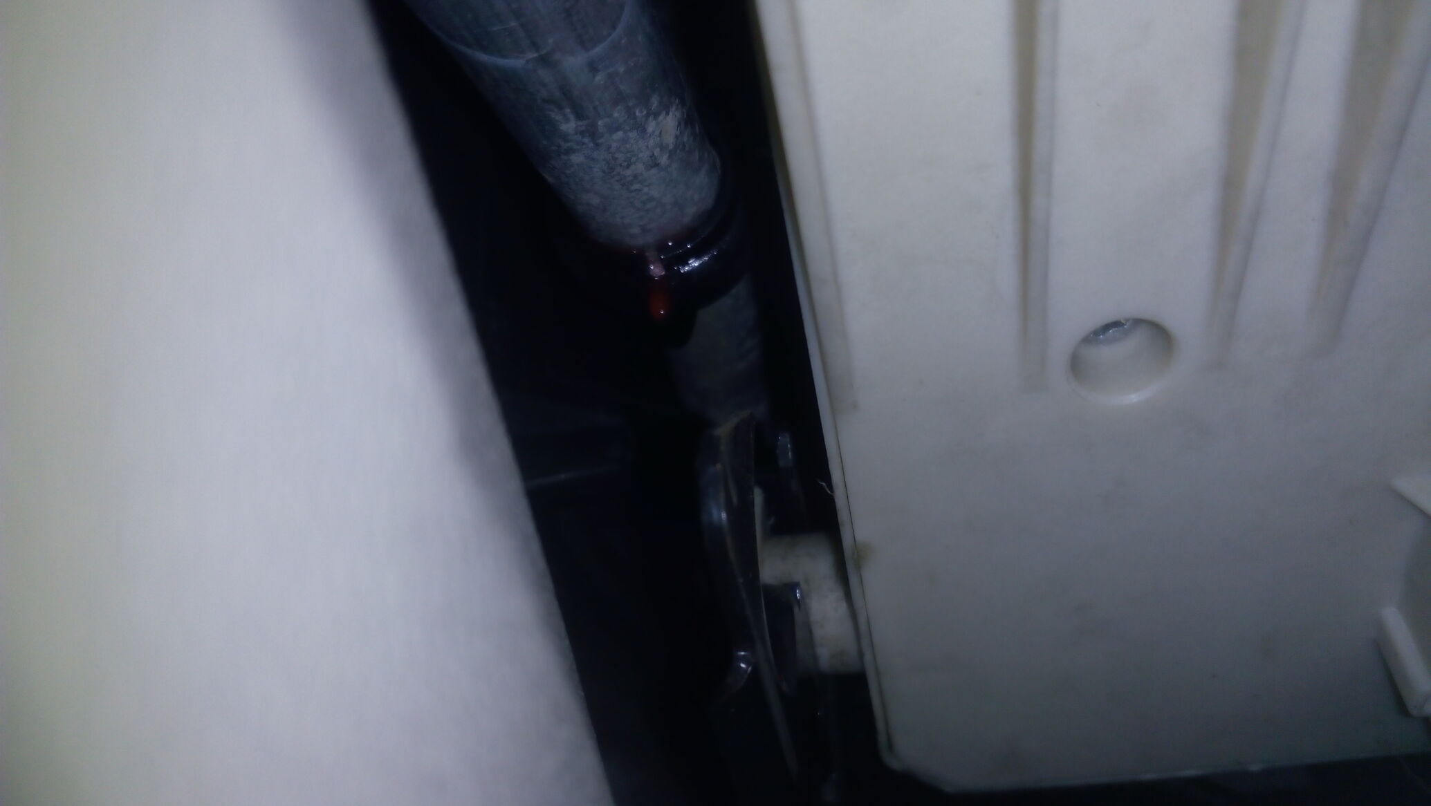 Megtapiztam és biza hűtőfolyadék, rózsaszín. Jön a motortér felől a két klímacső, a gemmodul mellett érnek be az utastérbe és itt van rajtuk egy-egy műanyag bilincs is. Az alsó csőnél a bilincs alól szivárog a lé, ráadásul meleg a cső, pedig alig 2km-t mentünk most vele, de ez gondolom normális. Picit később dobok fel képet, telóról nem engedi.