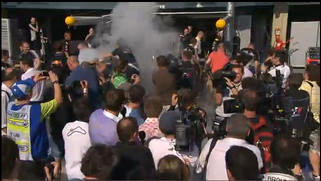 Még a végén mindenkinél lefüstöl és nevető negyediknek Hamilton megnyeri a VB-t.