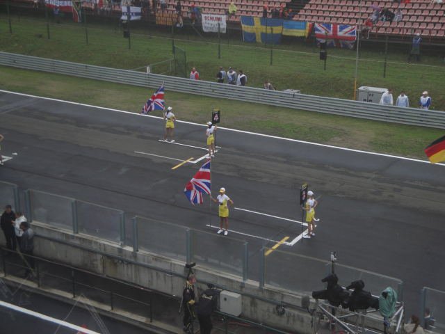 Annak ellenére, hogy fáztam, kissé bepirosodott a karom és az orrom, pedig nem vagyok egy gyorsan leégős típus. A boxból kivezető sáv vége mellett van egy szőke pályabíró csaj (talán már az előző években is ott volt). Nem tudtam eldönteni, hogy a zászló, a rózsaszín "kis" retikülje, vagy esetleg mindkettő nagyobb nála.