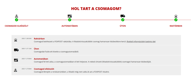 Azt írja a nyomonkövetés, hogy 26.-án az automatában lesz.